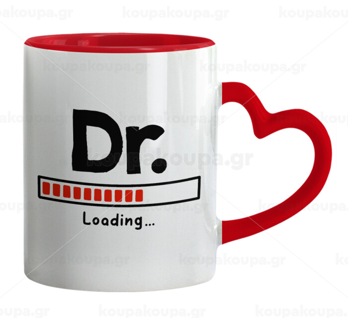 DR. Loading..., Κούπα καρδιά χερούλι κόκκινη, κεραμική, 330ml