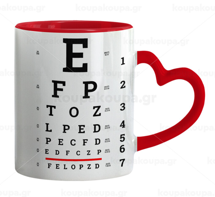 EYE test chart, Κούπα καρδιά χερούλι κόκκινη, κεραμική, 330ml