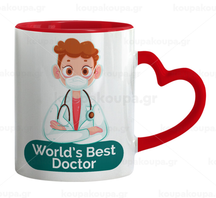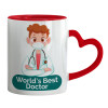 World's Best Doctor, Κούπα καρδιά χερούλι κόκκινη, κεραμική, 330ml