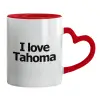 I love Tahoma, Κούπα καρδιά χερούλι κόκκινη, κεραμική, 330ml