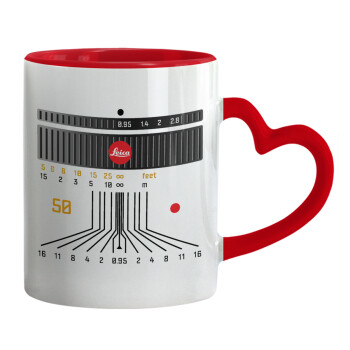 Leica Lens, Κούπα καρδιά χερούλι κόκκινη, κεραμική, 330ml