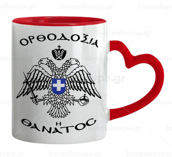 Ορθοδοξία ή Θάνατος, Κούπα καρδιά χερούλι κόκκινη, κεραμική, 330ml
