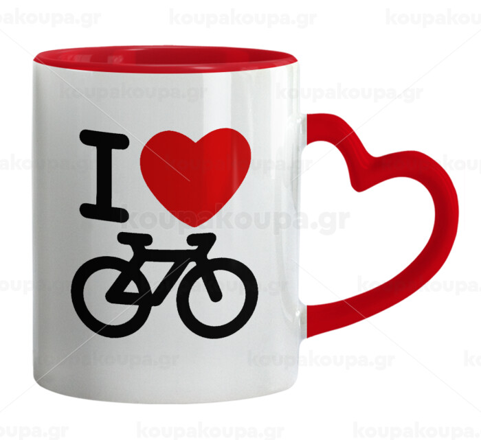 I love Bike, Κούπα καρδιά χερούλι κόκκινη, κεραμική, 330ml