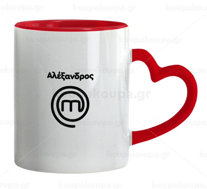 Master Chef Greece, Κούπα καρδιά χερούλι κόκκινη, κεραμική, 330ml