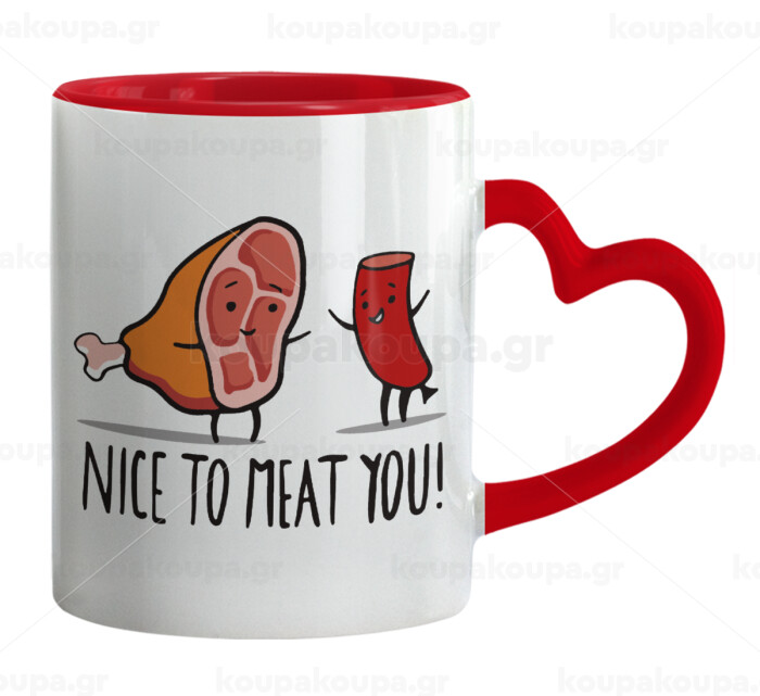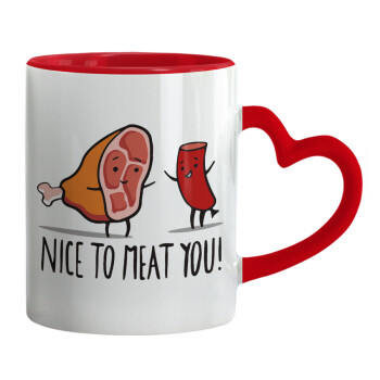 Nice to MEAT you, Κούπα καρδιά χερούλι κόκκινη, κεραμική, 330ml