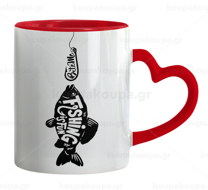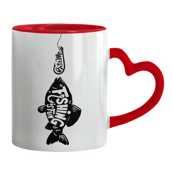 Fishing is fun, Κούπα καρδιά χερούλι κόκκινη, κεραμική, 330ml