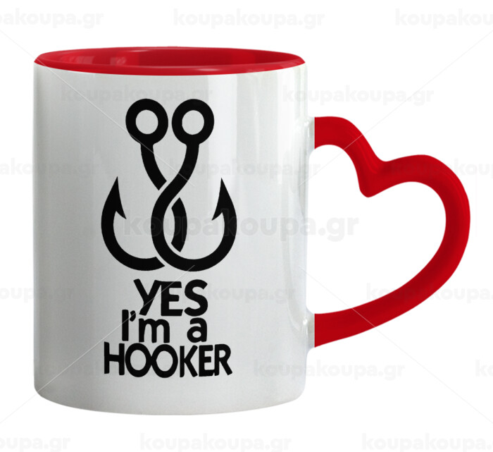 Yes i am Hooker, Κούπα καρδιά χερούλι κόκκινη, κεραμική, 330ml