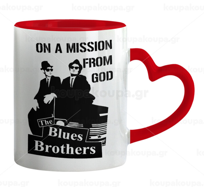 Blues brothers on a mission from God, Κούπα καρδιά χερούλι κόκκινη, κεραμική, 330ml