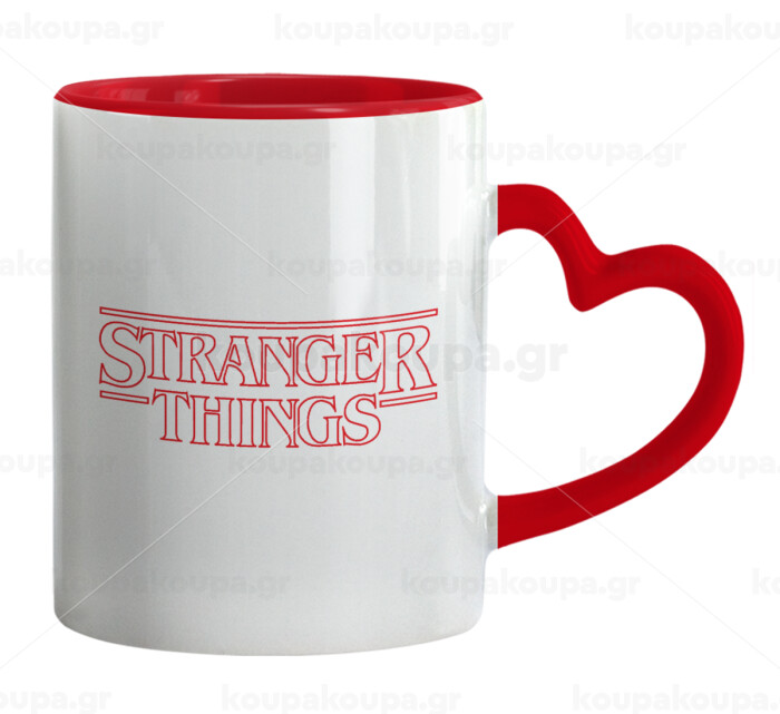 Stranger Things Logo, Κούπα καρδιά χερούλι κόκκινη, κεραμική, 330ml