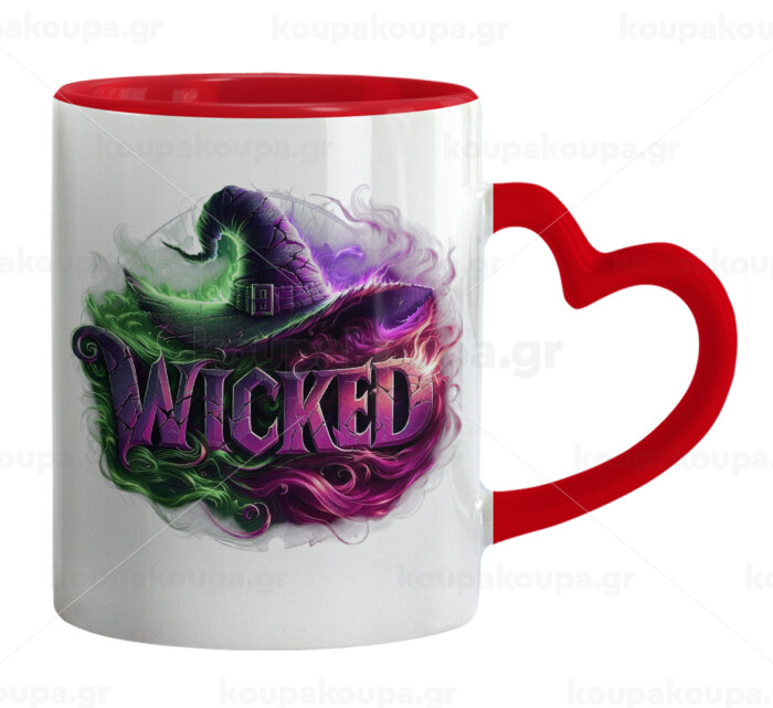 Wicked, Κούπα καρδιά χερούλι κόκκινη, κεραμική, 330ml
