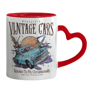 Wizard Flying Car, Κούπα καρδιά χερούλι κόκκινη, κεραμική, 330ml