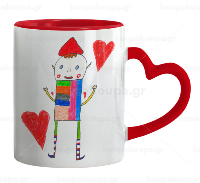 Ο Αλέξανδρος ζωγραφίζει την Αγάπη, Κούπα καρδιά χερούλι κόκκινη, κεραμική, 330ml