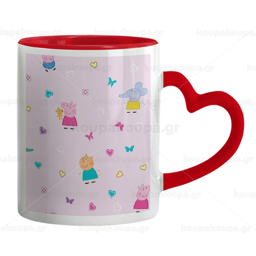 Πέππα το γουρουνάκι και οι φίλοι της, Κούπα καρδιά χερούλι κόκκινη, κεραμική, 330ml