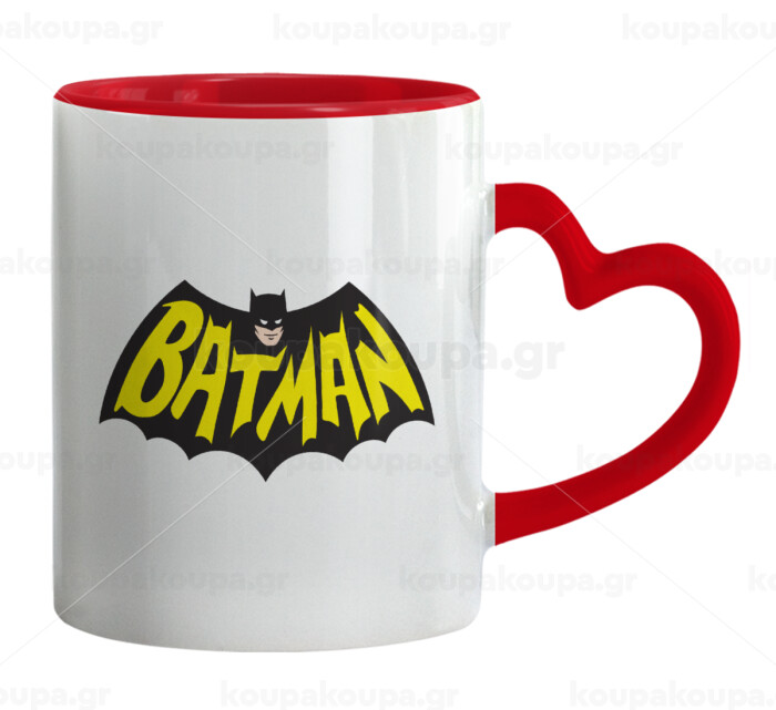 Batman classic logo, Κούπα καρδιά χερούλι κόκκινη, κεραμική, 330ml