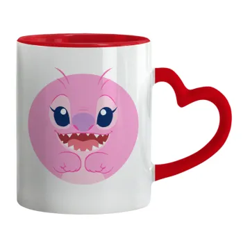 Lilo & Stitch Angel pink, Κούπα καρδιά χερούλι κόκκινη, κεραμική, 330ml