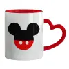 Mickey head, Κούπα καρδιά χερούλι κόκκινη, κεραμική, 330ml