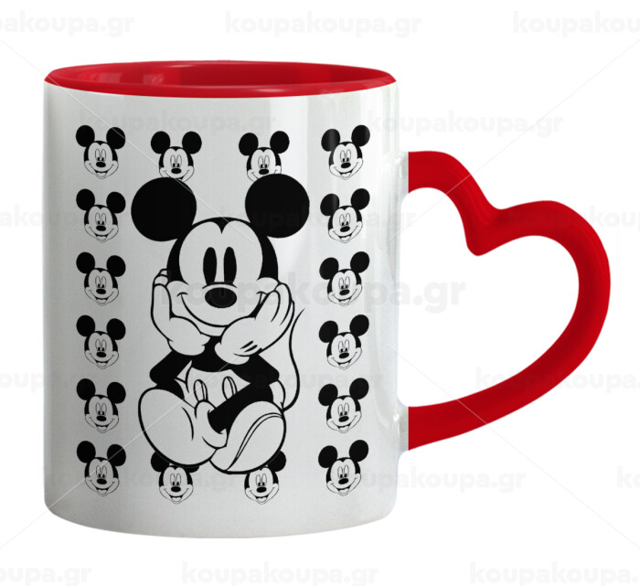 Mickey, Κούπα καρδιά χερούλι κόκκινη, κεραμική, 330ml