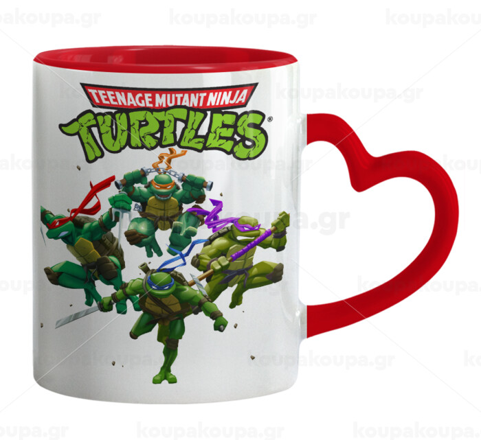 Ninja turtles, Κούπα καρδιά χερούλι κόκκινη, κεραμική, 330ml