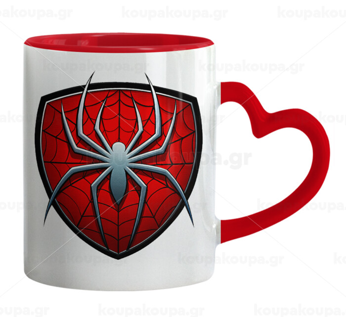 Spider-man, Κούπα καρδιά χερούλι κόκκινη, κεραμική, 330ml