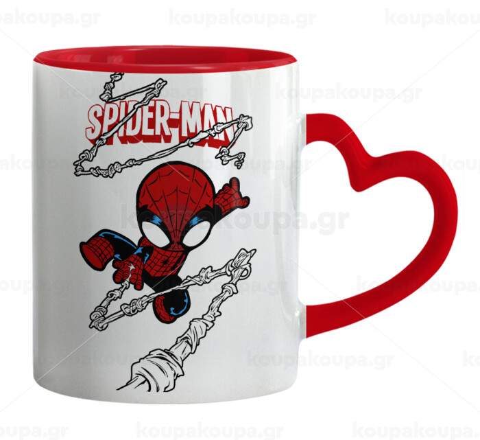 Spiderman kid, Κούπα καρδιά χερούλι κόκκινη, κεραμική, 330ml