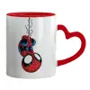 Spiderman upside down, Κούπα καρδιά χερούλι κόκκινη, κεραμική, 330ml