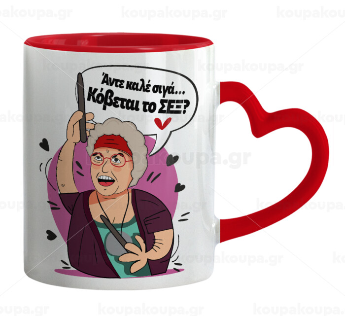 Αντε καλέ, σιγά, κόβεται το σέξ ;, Κούπα καρδιά χερούλι κόκκινη, κεραμική, 330ml