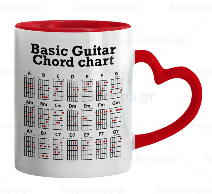 Συγχορδίες κιθάρας, Κούπα καρδιά χερούλι κόκκινη, κεραμική, 330ml