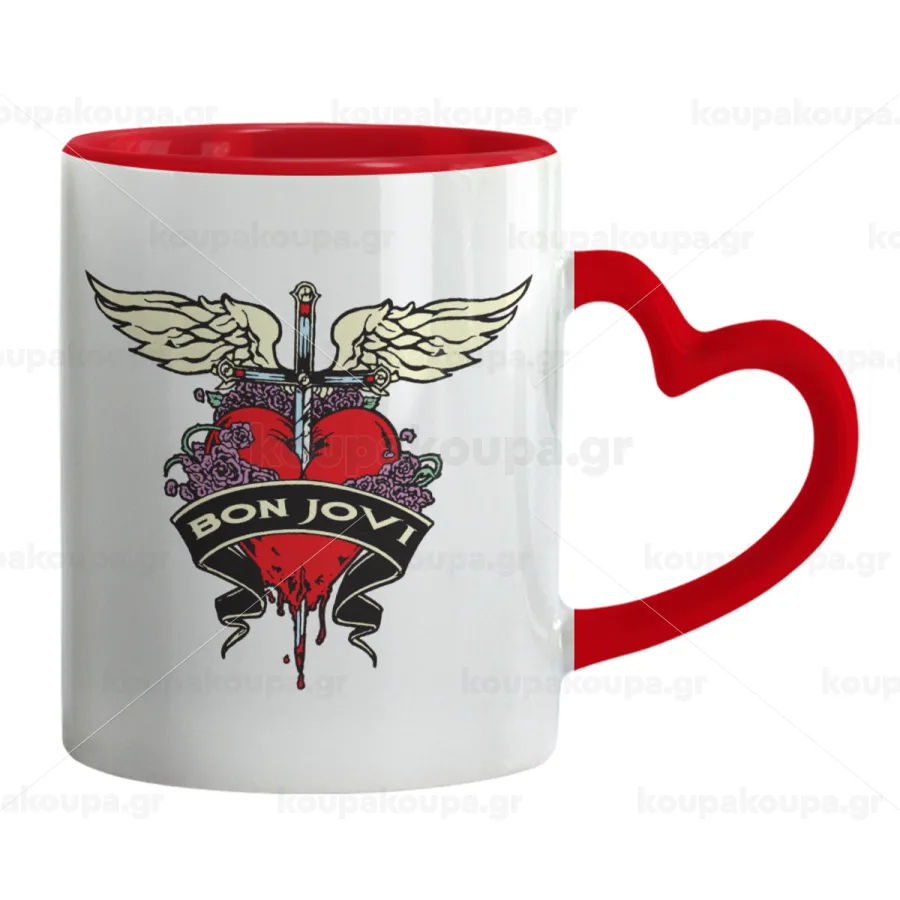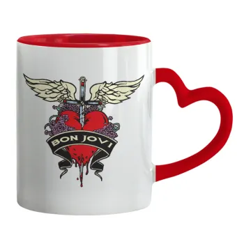 Bon Jovi, Κούπα καρδιά χερούλι κόκκινη, κεραμική, 330ml