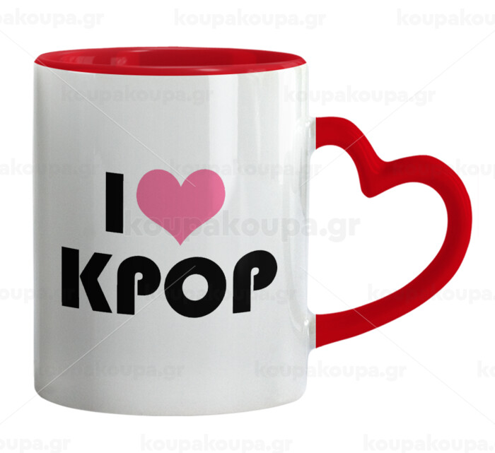 I Love KPOP, Κούπα καρδιά χερούλι κόκκινη, κεραμική, 330ml