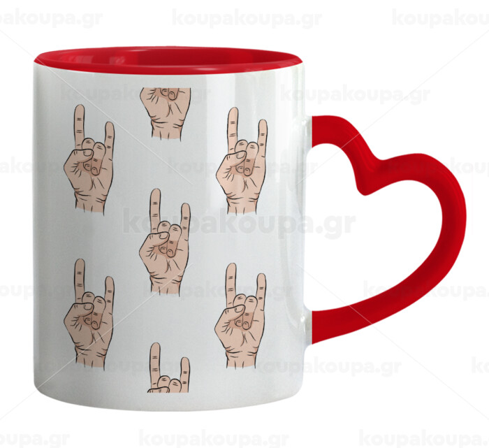 Rock hands, Κούπα καρδιά χερούλι κόκκινη, κεραμική, 330ml