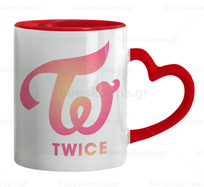 Twice, Κούπα καρδιά χερούλι κόκκινη, κεραμική, 330ml