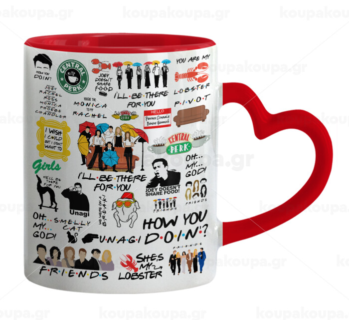 Friends, Κούπα καρδιά χερούλι κόκκινη, κεραμική, 330ml