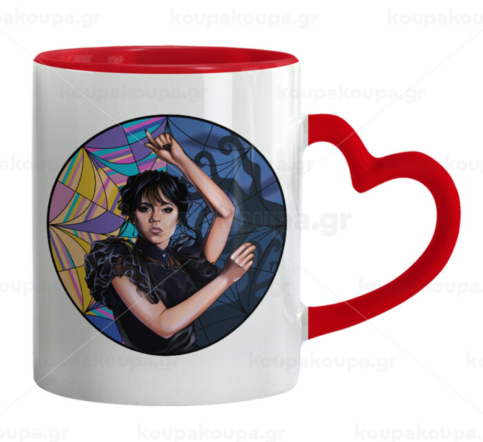 Wednesday dance, Κούπα καρδιά χερούλι κόκκινη, κεραμική, 330ml