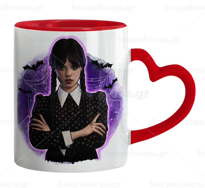 Wednesday moonlight, Κούπα καρδιά χερούλι κόκκινη, κεραμική, 330ml