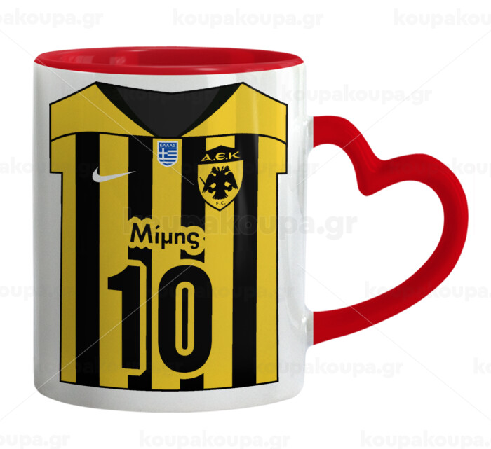 ΑΕΚ εμφάνιση, Κούπα καρδιά χερούλι κόκκινη, κεραμική, 330ml