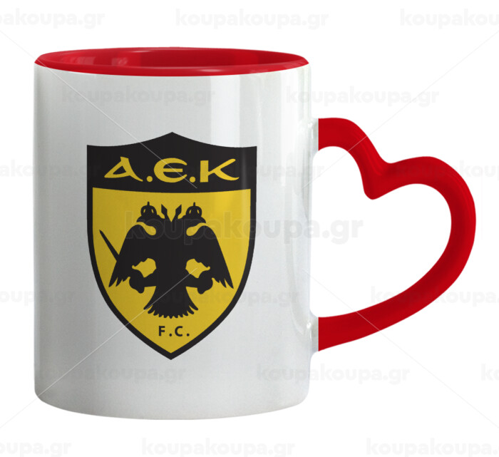 ΑΕΚ, Κούπα καρδιά χερούλι κόκκινη, κεραμική, 330ml