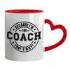 Because i'm the Coach, Κούπα καρδιά χερούλι κόκκινη, κεραμική, 330ml