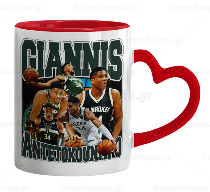 Giannis Antetokounmpo, Κούπα καρδιά χερούλι κόκκινη, κεραμική, 330ml