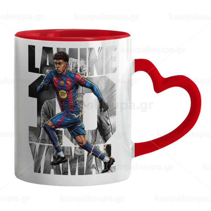 Lamine Yamal (Λαμίν Γιαμάλ), Κούπα καρδιά χερούλι κόκκινη, κεραμική, 330ml