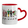Christmas FRIENDS, Κούπα καρδιά χερούλι κόκκινη, κεραμική, 330ml