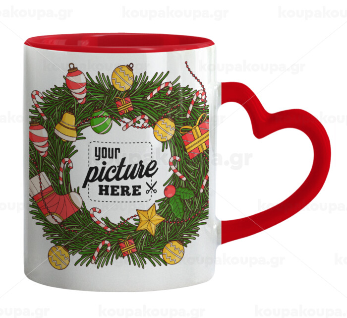 PHOTO Christmas twitch, Κούπα καρδιά χερούλι κόκκινη, κεραμική, 330ml