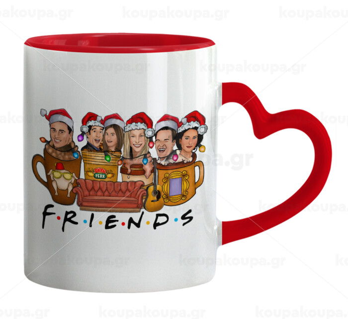 FRIENDS xmas, Κούπα καρδιά χερούλι κόκκινη, κεραμική, 330ml