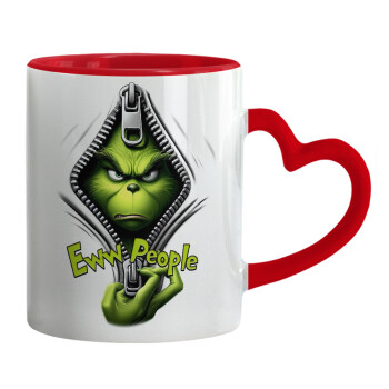 Grinch, eww people, Κούπα καρδιά χερούλι κόκκινη, κεραμική, 330ml