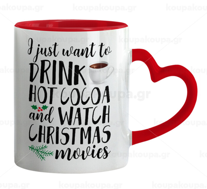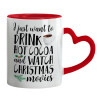 I just want to drink hot cocoa and watch christmas movies, Κούπα καρδιά χερούλι κόκκινη, κεραμική, 330ml
