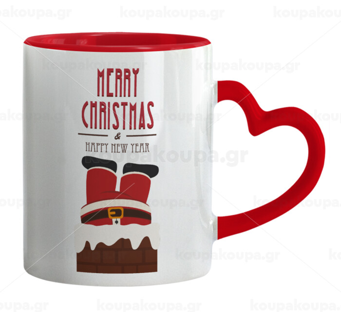 Merry christmas chimney, Κούπα καρδιά χερούλι κόκκινη, κεραμική, 330ml