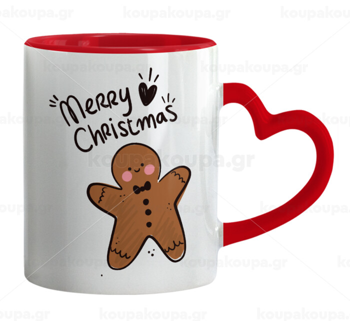 mr gingerbread, Κούπα καρδιά χερούλι κόκκινη, κεραμική, 330ml