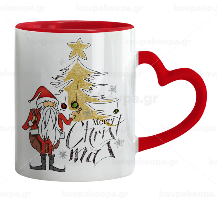 Santa Claus gold, Κούπα καρδιά χερούλι κόκκινη, κεραμική, 330ml