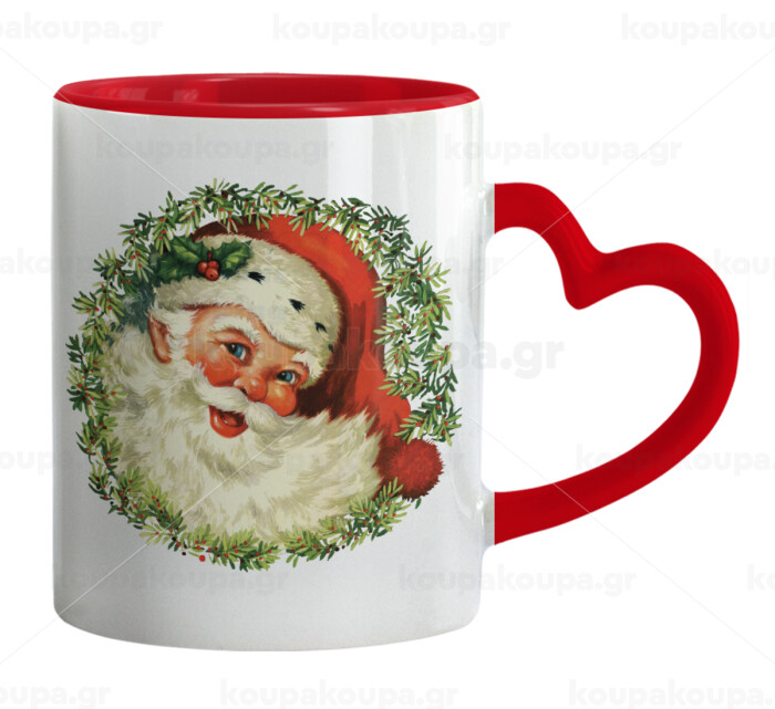 Santa Claus, Κούπα καρδιά χερούλι κόκκινη, κεραμική, 330ml