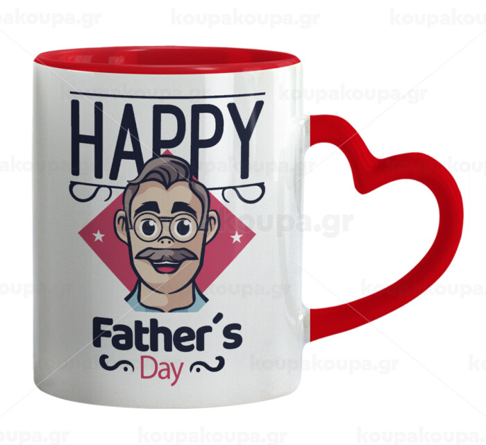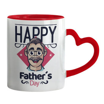 Για την γιορτή του μπαμπά!, Κούπα καρδιά χερούλι κόκκινη, κεραμική, 330ml