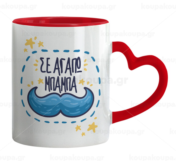 Σε αγαπώ μπαμπά!!!, Κούπα καρδιά χερούλι κόκκινη, κεραμική, 330ml